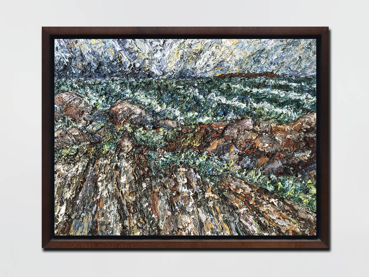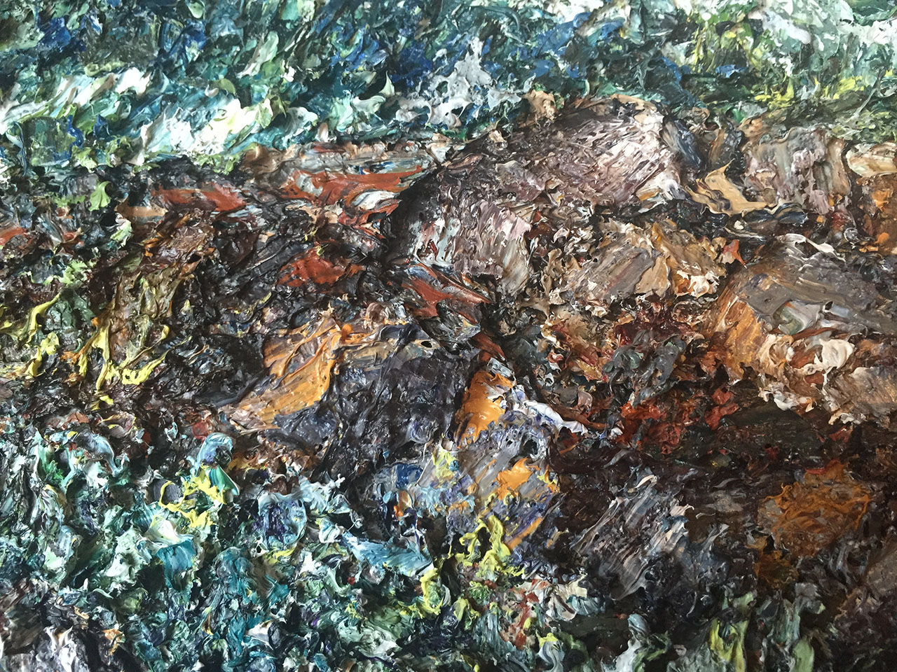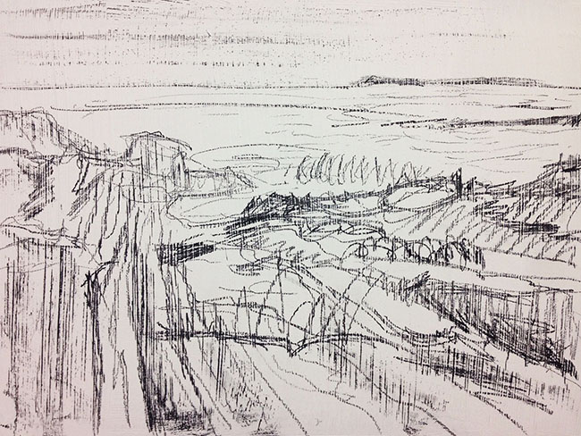 The slide bar on the split image to the right shows the initial sketch (or early phase) to the completed work.