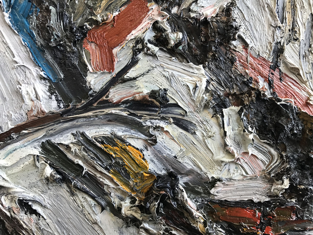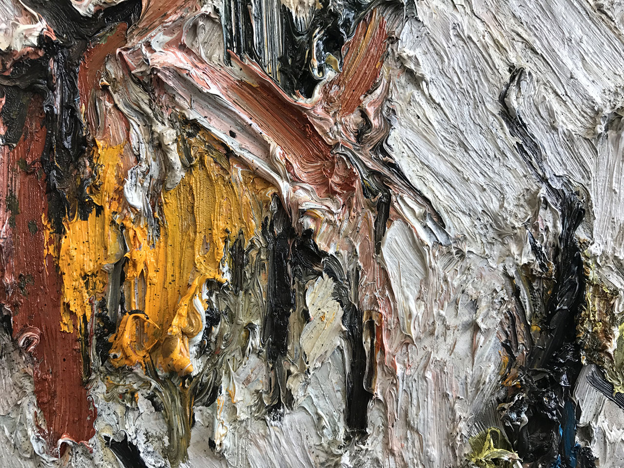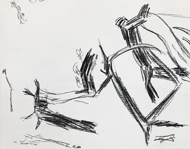 The slide bar on the split image to the right shows the initial sketch (or early phase) to the completed work.