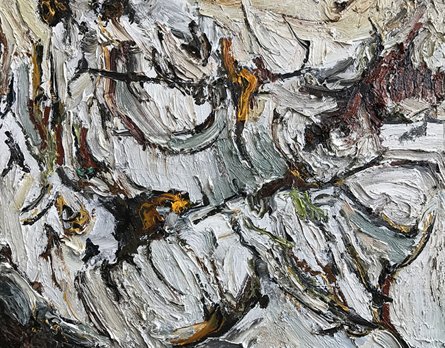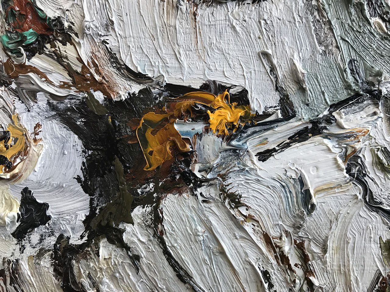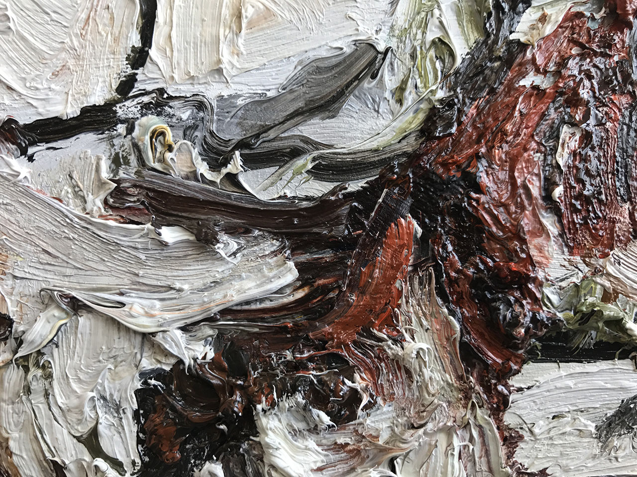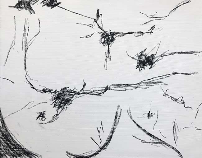 The slide bar on the split image to the right shows the initial sketch (or early phase) to the completed work.