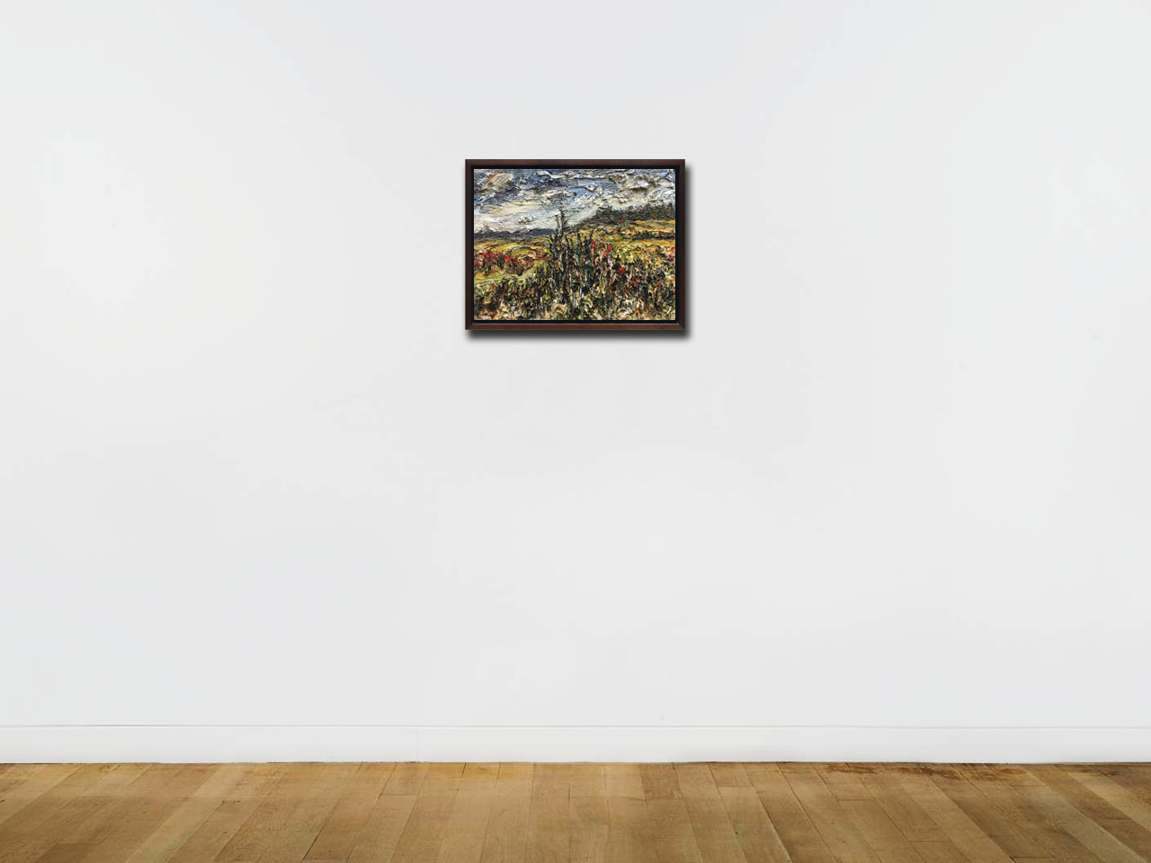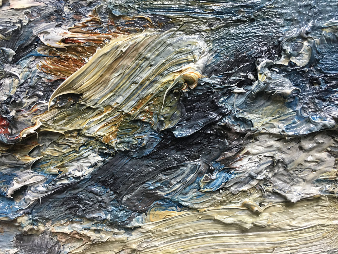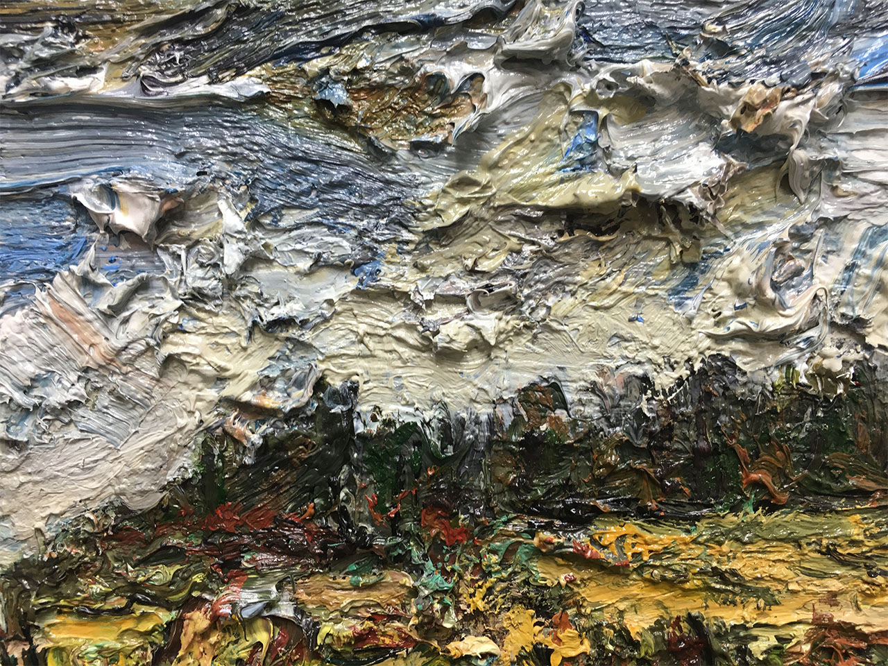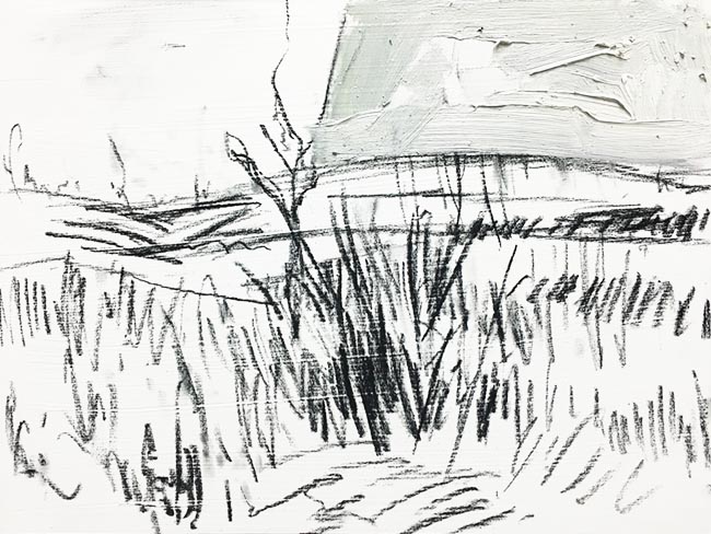 The slide bar on the split image to the right shows the initial sketch (or early phase) to the completed work.