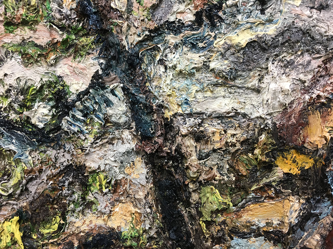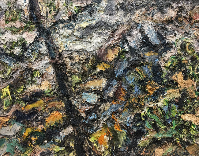 The slide bar on the split image to the right shows the initial sketch (or early phase) to the completed work.