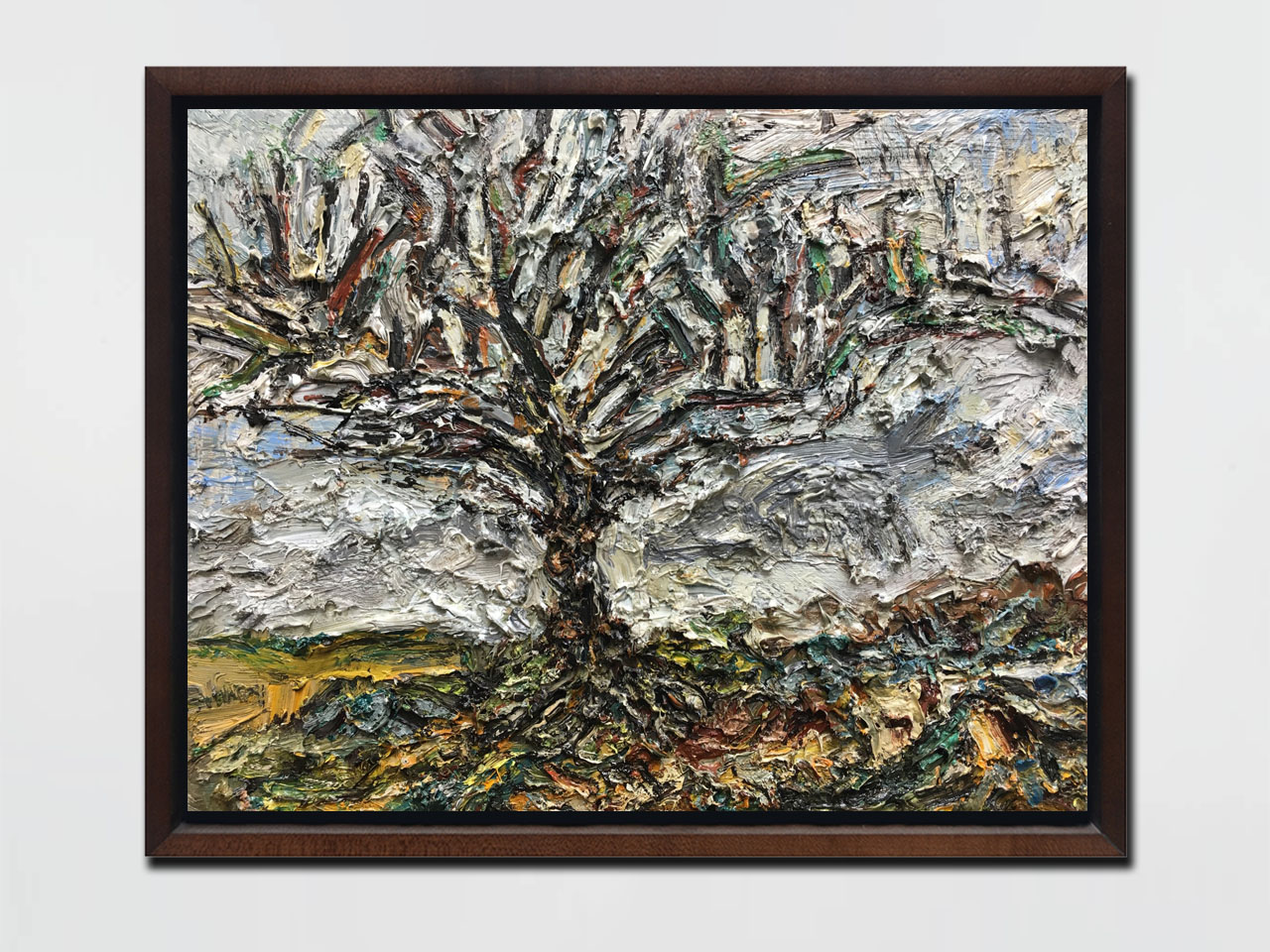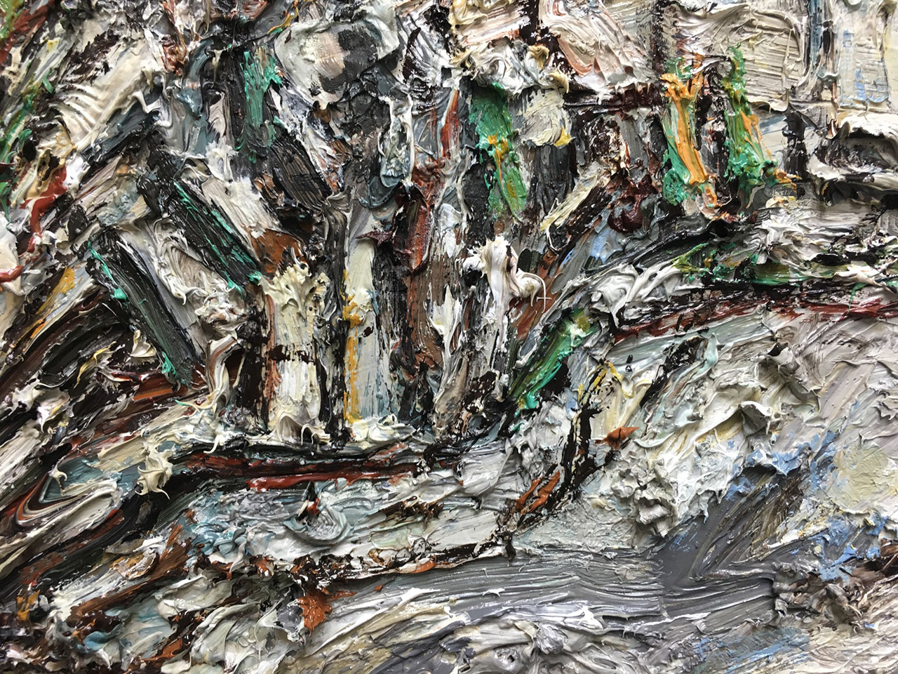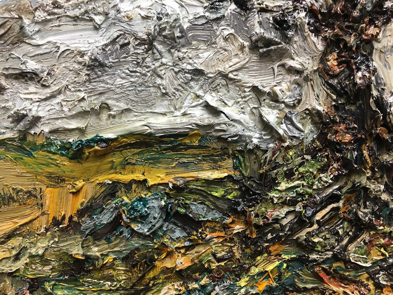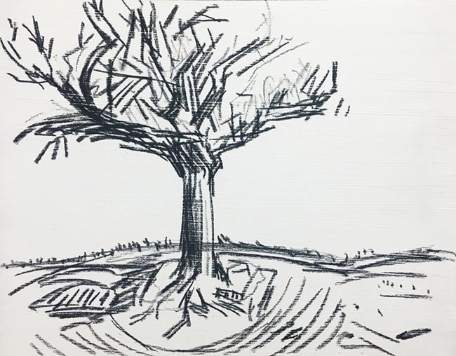 The slide bar on the split image to the right shows the initial sketch (or early phase) to the completed work.