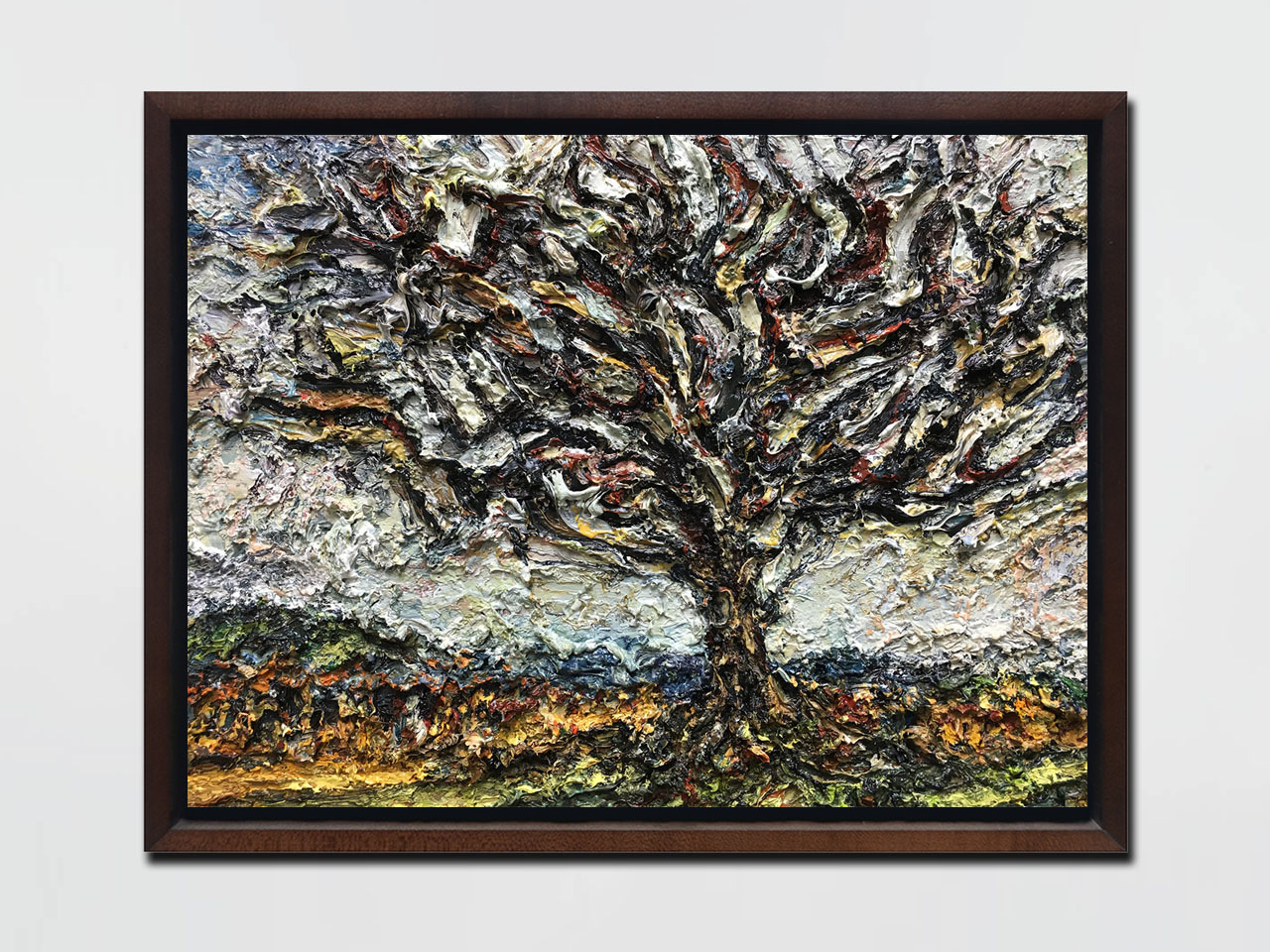 The slide bar on the split image to the right shows the initial sketch (or early phase) to the completed work.