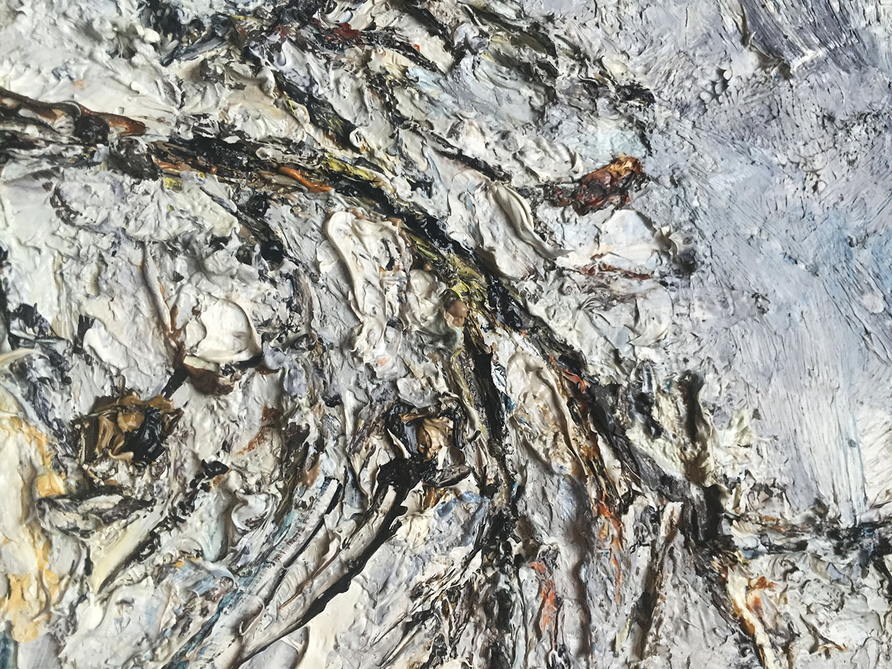 The slide bar on the split image to the right shows the initial sketch (or early phase) to the completed work.