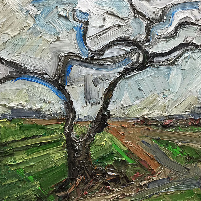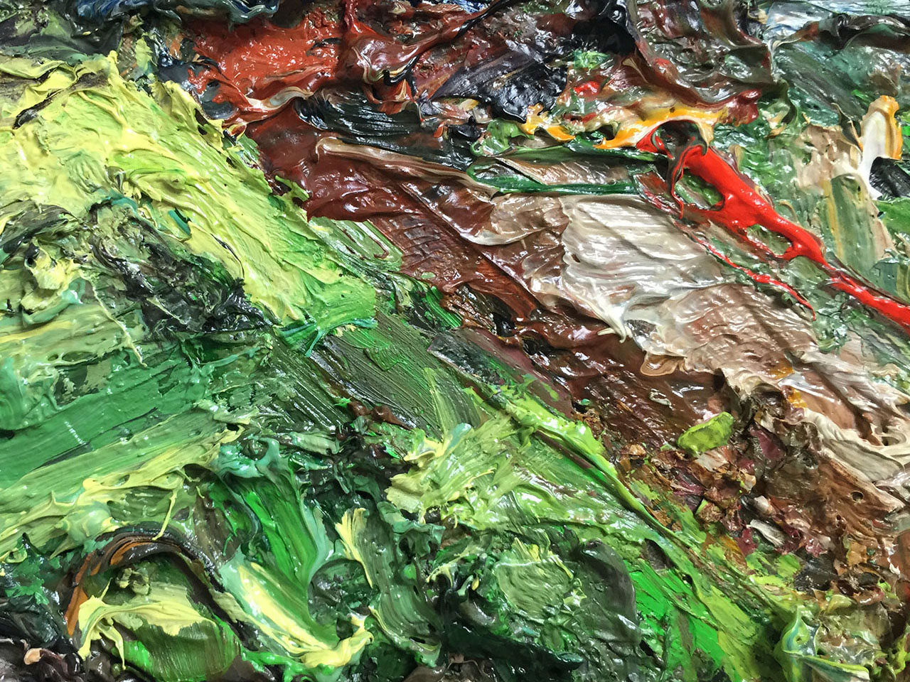 The slide bar on the split image to the right shows the initial sketch (or early phase) to the completed work.