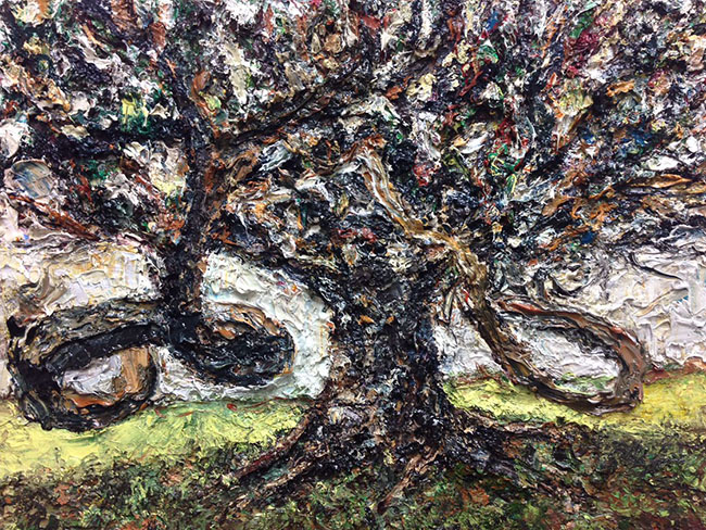 The slide bar on the split image to the right shows the initial sketch (or early phase) to the completed work.