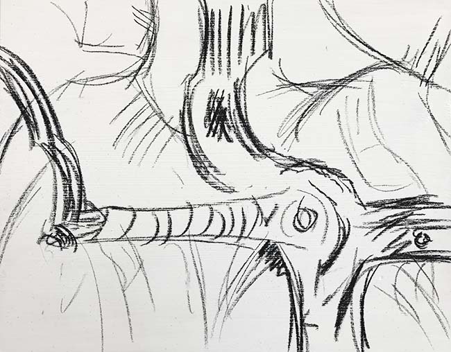The slide bar on the split image to the right shows the initial sketch (or early phase) to the completed work.